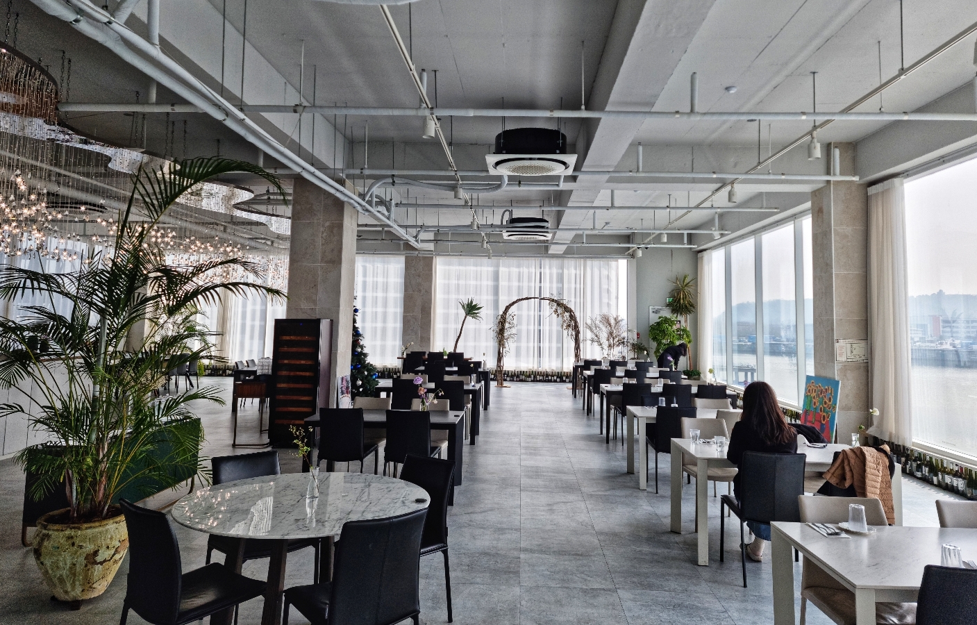 라마리나의 특징은 바로 김포 아라뱃길을 바라보는 뷰이다. 3층에서 보는 김포 아라마리나의 요트장 뷰는 쉽게 볼 수 있는 풍경이 아니다. 레스토랑과 카페 전면은 모두 대형 유리창을 배치해서 김포 아라뱃길을 조망할 수 있고 유리창을 통해 들어오는 햇빛은 따스하고 환한 느낌을 선사하다. 실내에 있지만 마치 야외에서 요트장을 바라보며 식사하는 느낌이다.