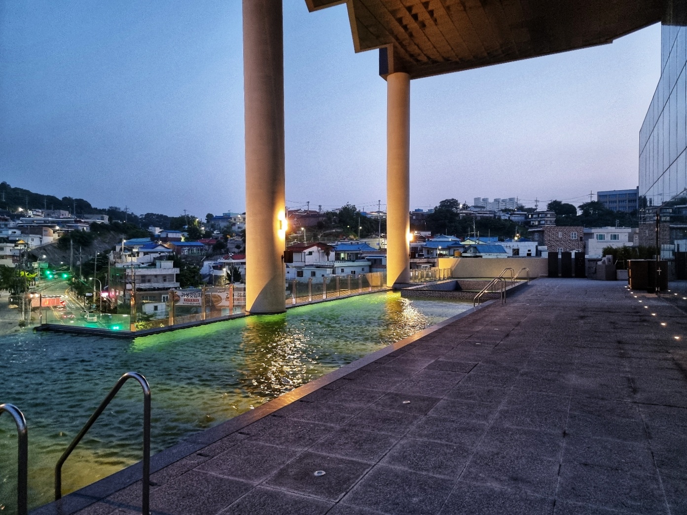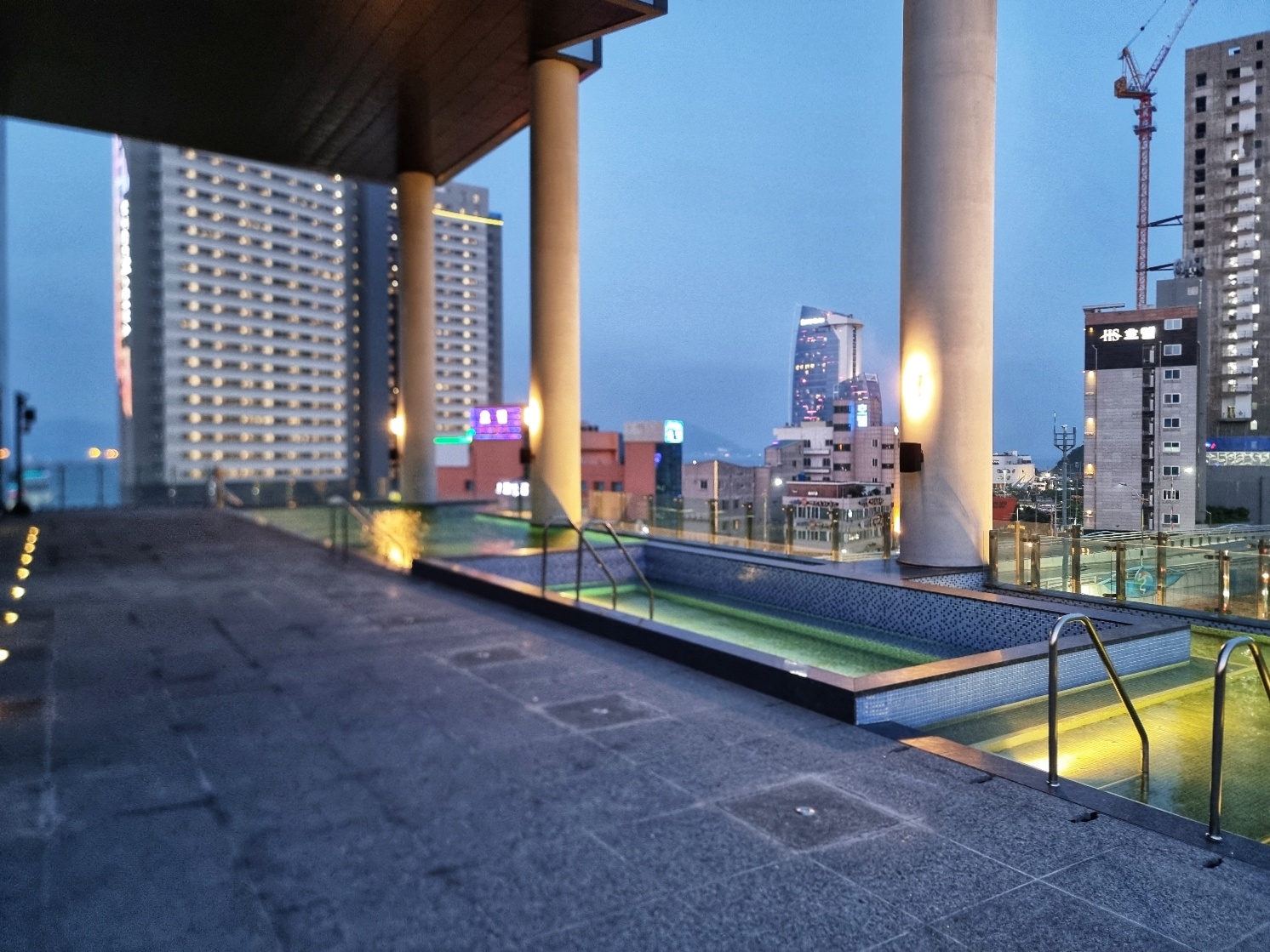 신라 스테이 여수는 지상 2층부터 5층까지 주차장, 6층에는 로비와 야외수영장이 있다. 야외 수영장은 보수공사 기간으로 이용할 수 없었는데 야외 풀 규모가 크지 않고 바다 뷰가 주변 건물에 가려져 있다. 하지만 6층의 오픈된 공간에서 색다른 시간과 야경을 즐길 수 있다는 것은 확실하다.