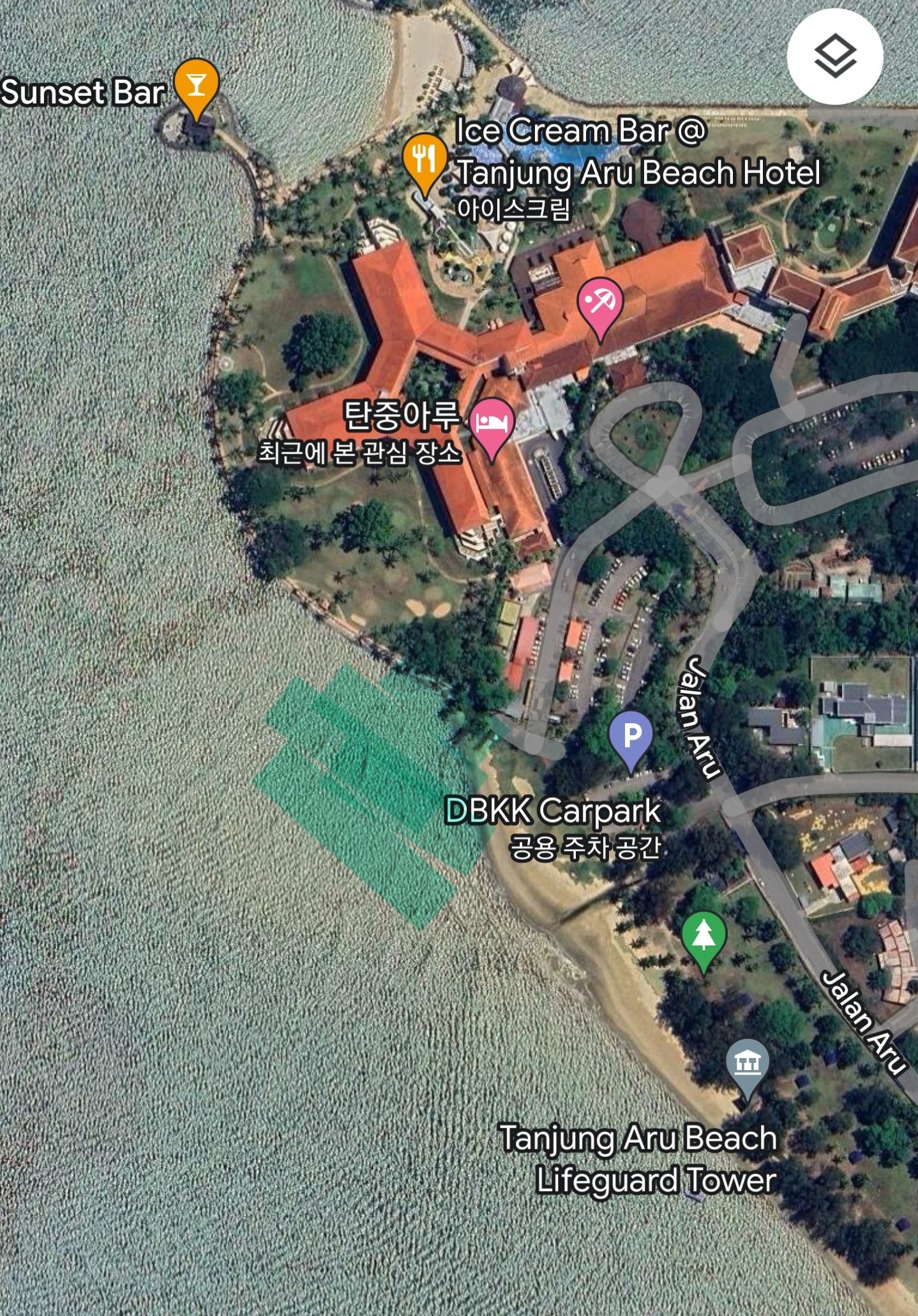 샹그릴라 리조트 투숙객이라면 정문 로비를 통해 걸어나와 해변으로 이동하는 것이 좋다. 해변으로 가기 위해 안전 펜스를 넘어 해변을 간다면 리조트와 해변이 만나는 지점에 쌓은 방파제 역할의 바위가 매우 미끄러워 낙상사고를 당할 수 있다.