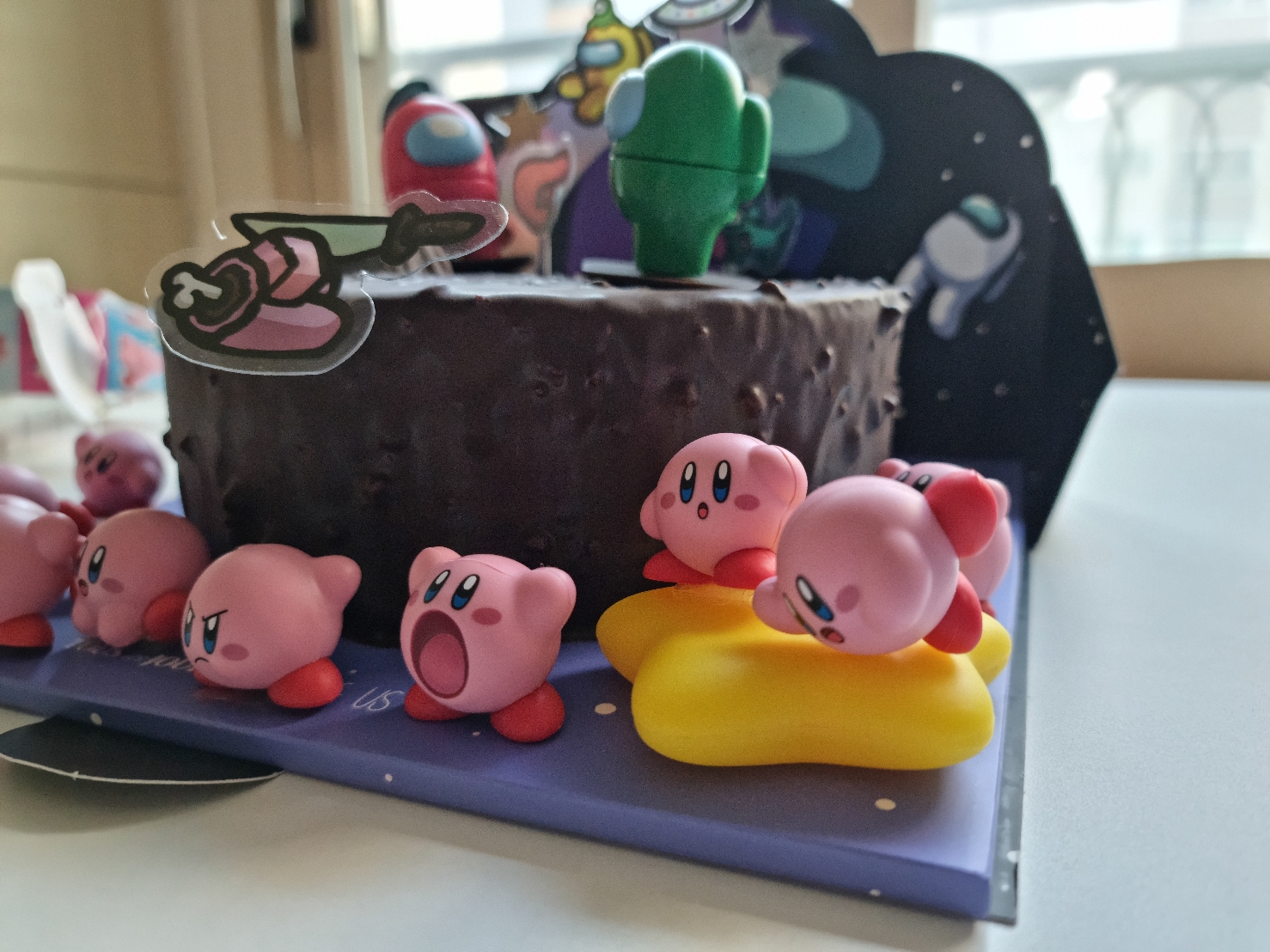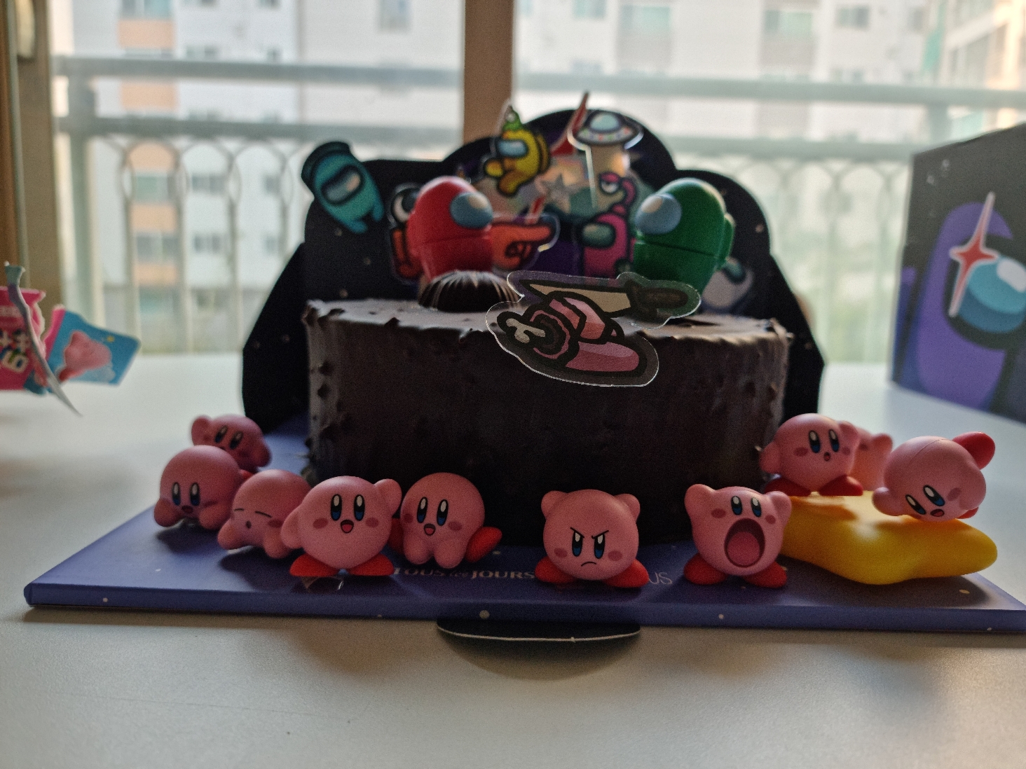 초기 계획은 하얀색의 장식이 없는 케이크를 구매해서 별의 커비 미니 피겨를 올려줄 생각이었지만, 쌍둥이들은 각자 원하는 스타일이 달라서 어몽어스와 별의 커비 콜라보가 이루어지게 되었다.